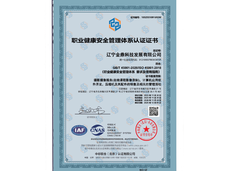 职业健康安全管理体系认证证书